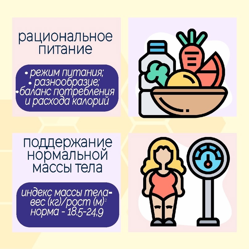 В настоящее время ВОЗ констатирует, что неинфекционные заболевания в 70% случаев являются причиной преждевременной смерти, поэтому укрепление здоровья населения одна из актуальных задач здравоохранения, важным аспектом которой является здоровый образ жизни. Какие же основные правила ЗОЖ? Подробнее в наших карточках: