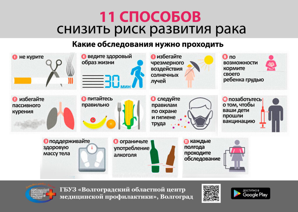 Для снижения риска развития рака, необходимо соблюсти следующие правила