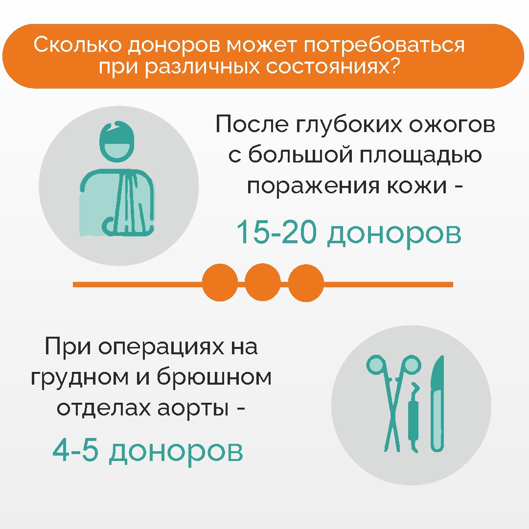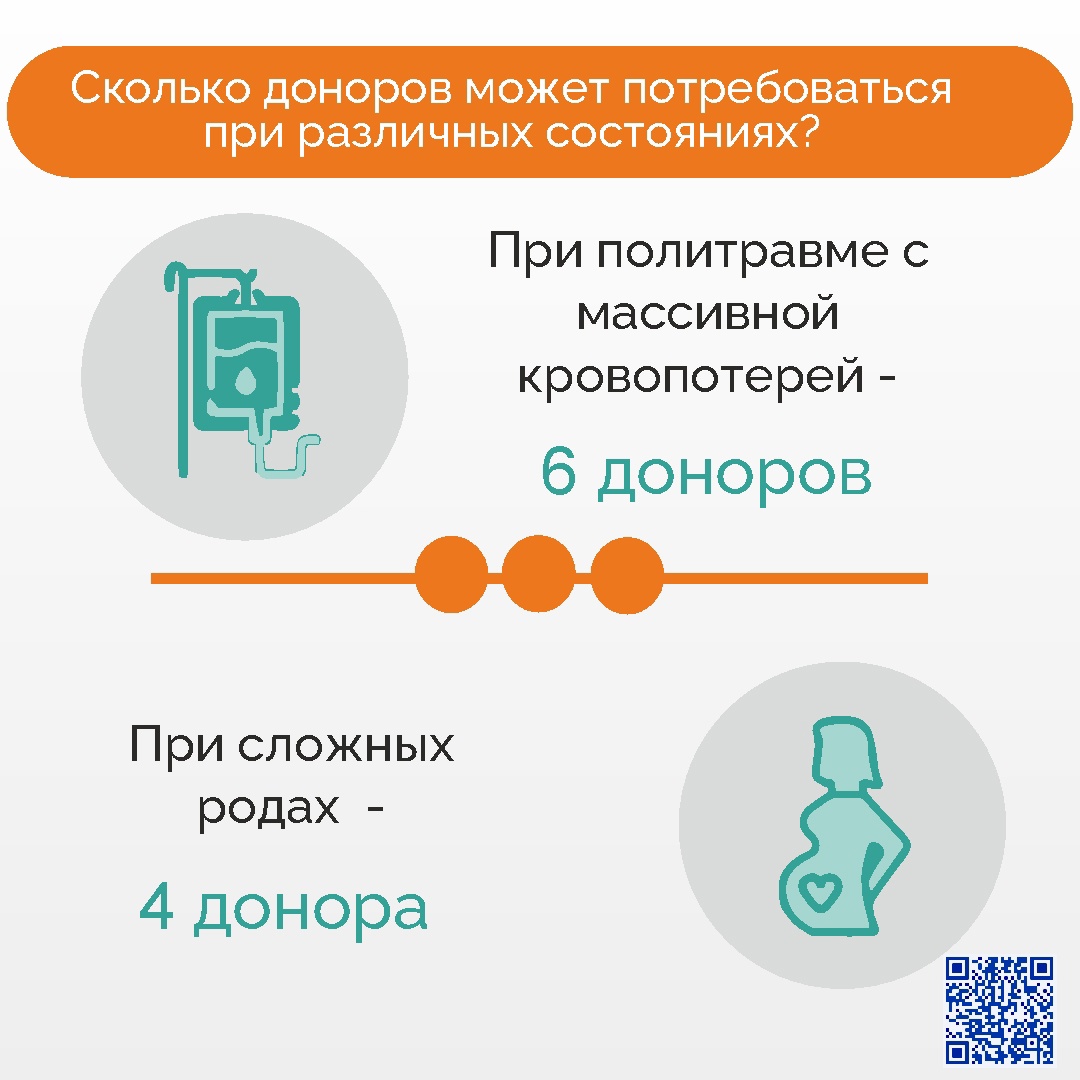 Сдача крови и ее компонентов занимает не так много время, а компоненты крови могут понадобиться немедленно. Донорство должно было регулярным! Только так можно обеспечить постоянный запас компонентов крови, в т.ч. для пострадавших в чрезвычайных ситуациях.